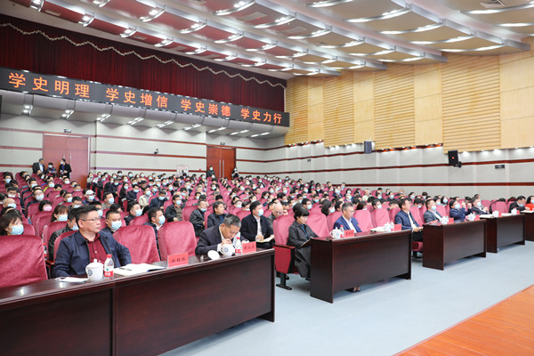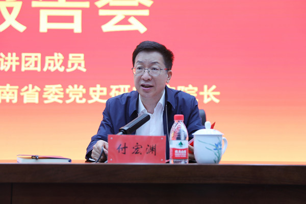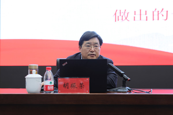 4月13日下午,党史学习教育省委宣讲团在我校举行宣讲报告会,省委宣讲团成员、中共湖南省委党史研究院院长胡振荣作宣讲报告。校党委书记付宏渊主持报告会并讲话。
