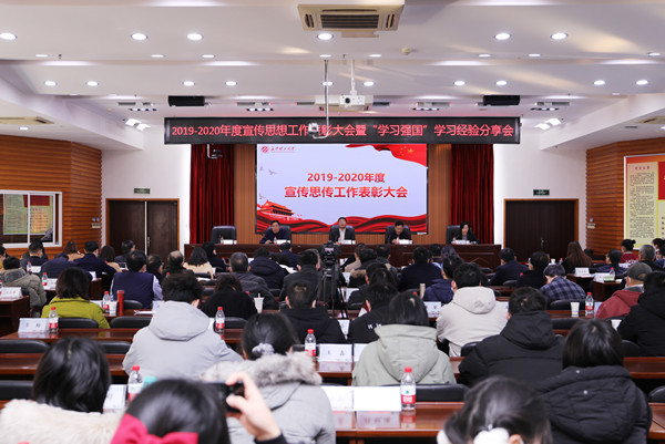 会议在学校内外宣传工作视频《我们在现场》播放中开始。邹宏如宣读了表彰文件,通报了2019-2020年度宣传思想工作先进集体、先进个人、优秀学生通讯员表彰名单,“学习强国”学习先进单位和学习达人、学习之星名单。他勉励受表彰的集体和个人珍惜荣誉,再接再厉,以更加积极的态度和更加饱满的热情宣传学校改革发展中的新举措、新成就,挖掘更多立德树人的典型人物与先进事迹,大力培育和践行社会主义核心价值观,进一步激发和汇聚师生正能量,为“双一流”建设和跻身百强作出更大贡献。他希望全校各单位认真总结好的学习经验和做法,使“学习强国”学习平台成为广大党员干部群众学习宣传贯彻习近平新时代中国特色社会主义思想的重要载体,推动我校“学习强国”学习平台工作迈上新台阶、取得新成效。