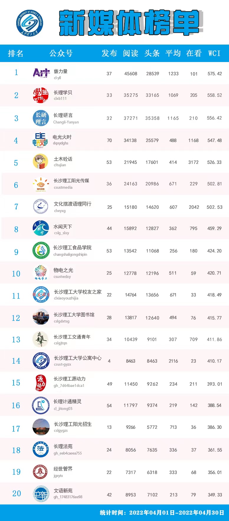 校属单位微信公众号排名(2022年3-4月)