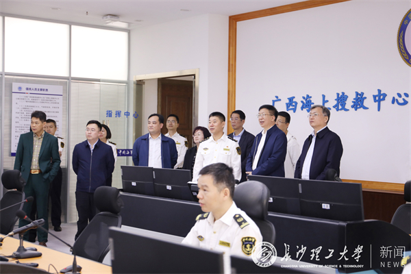在广西海事局,付宏渊一行参观了广西海上搜救中心和海事指挥中心,深入了解了涉水监管业务。