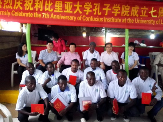 历经七年风雨,利大孔子学院已经进入了收获的季节。当日16位学生毕业证的颁发、孔院艺术团的诗朗诵、合唱等节目以及学生代表的发言,无一不表达了老师和学生对孔子学院生日的祝福。毫无疑问,利比里亚孔子学院在这块土地上的生根发芽、茁壮成长,将进一步推动中利两国之间的友好合作。
