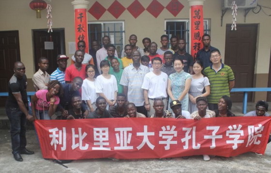 当地时间2016年10月29日下午,利比里亚大学孔子学院举行全球孔子学院日活动,组织学生观赏中国经典电影《功夫》和观摩、学习中国太极拳。参加活动的有孔子学院中方院长黄柏青博士、外方代理院长Mr. Dexter(德克斯特先生)以及贺润东老师、明皓老师、志愿者教师熊宇仙、唐小伟、郑微微以及众多孔院学生。