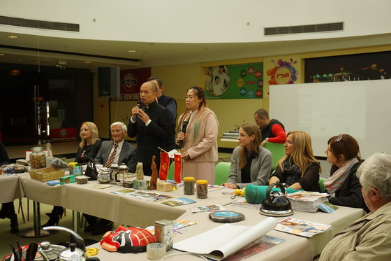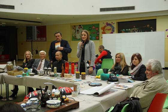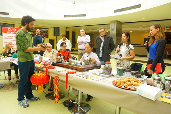 文化节伊始,黑山孔院中方院长邓嵘发表致辞。邓嵘对此次活动主办方黑山广场负责团队表示了感谢,随后介绍了茶文化的渊源及孔院基本情况。他说到,中华茶文化源远流长,博大精深。黑山人喜欢喝茶,我们欢迎大家去孔子学院参观,去品茶。外方院长米莱娜也介绍到,此次文化节是由多家机构共同承办,茶文化节的举办是希望更多人了解中国茶艺。展会期间,孔院教师王明慧向大家展示了中华茶艺,雷英老师辅助解说。从茶的种类到茶具再到泡茶步骤,从茶的养生功效到品茶细节,她们详细向大家展示了中国茶及茶艺文化。随后,孔院老师邀请现场嘉宾及观众一一品茶、评茶,好评如潮。一杯手工茶,让大家真实体验了茶艺之美以及中国茶的内涵和温度。