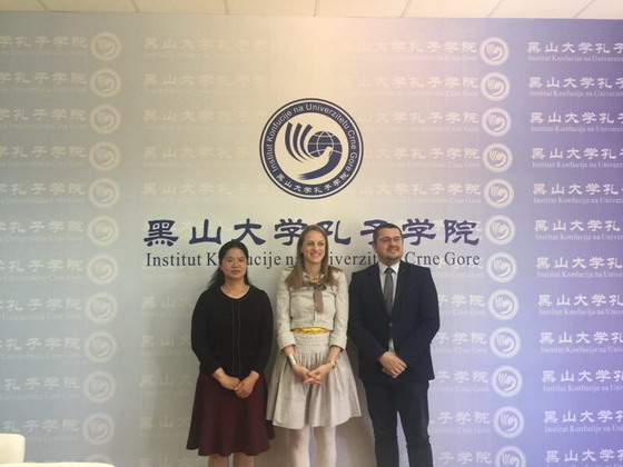 当地时间2017年4月13日,黑山大学孔子学院与黑山乒乓球协会顺利签署合作协议。孔子学院中方院长罗春霞、外方院长米莱娜·久卡诺维奇(Milena Đukanović)及黑山乒乓球协会会长内纳德·雷斯维奇(Nenadom Raičevićem)出席签字仪式。