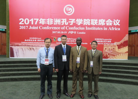 5月18日-19日,2017年非洲孔子学院联席会议在赞比亚首都卢萨卡(Lusaka)召开。来自非洲35个国家48所孔子学院和6个孔子课堂的中外校长、院长,以及20家中非企业和机构代表,共计240多人参加,会议规模创历届之最。副校长蒋昌波率国际交流处、外国语学院及利比里亚大学孔子学院相关负责人出席大会,并与兄弟院校代表进行了充分交流。