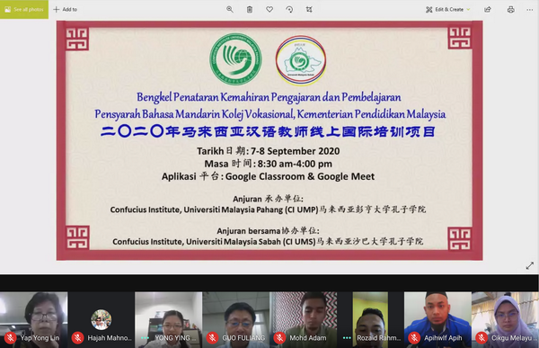 9月7日-8日,受马来西亚教育部技术职业教育司委托,沙巴大学孔子学院与彭亨大学孔子学院共同承办马来西亚技术职业学院中文教师培训。本次培训以线上课程的形式进行,来自83所技术职业学院的92名本土中文教师参与了培训。