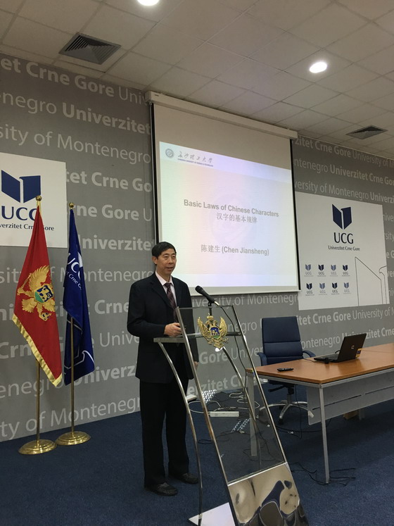 根据孔子学院总部/国家汉办“三巡”(巡演、巡讲、巡展)项目的总体部署,应黑山大学的邀请,我校语言学教授陈建生于12月7日至9日赴该校进行为期3天的汉语语言与中国文化系列巡讲,首场讲座于当地时间12月7日在黑山大学学术报告厅成功举行,100多名师生到位聆听。