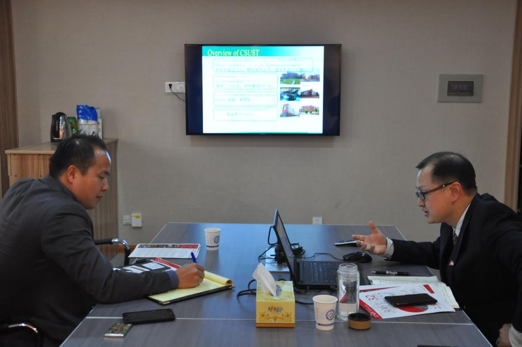 同日稍晚,吴迪龙在云塘校区会议室会见到访的美国内华达大学工程学院Jaekeun主任。会上,吴迪龙介绍了我校办学的基本情况,就我校强势学科与特色专业的发展、我校国际化愿景、现有的中外合作办学项目等与Jaekeun主任进行了深入探讨。双方表达了在电气工程专业下开展中外合作办学的愿望。Jaekeun对这一项目深感兴趣,并就项目在实际运行中具体的教师管理、学籍管理、学分管理等提出了自己的建议,他表示愿进一步与我校开展各种形式的国际合作,特别是在电气工程领域下能有所突破。双方将进一步保持密切联系,并就合作的有关事项寻求法律咨询以利后续工作的开展。