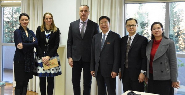 12月4日上午,在我驻黑山大使崔志伟及政治部主任于希的陪同下,付宏渊一行前往首都波德戈里察总统府拜会黑山总统菲利普•武亚诺维奇(Filip Vujanović),武亚诺维奇携总统外事顾问布尔赞、经济顾问图佐维奇亲切接见了付宏渊一行。会谈中,武亚诺维奇高度评价了我校近年来为巩固中黑两国友谊所做的贡献,他表示,中国是一个真正崛起的大国,黑山人民很高兴与中国人民做朋友,我校此次访问意义非凡,将开启中黑两国高校合作的新空间。付宏渊感谢总统先生百忙之中的亲切接见,向总统汇报了我校与黑山大学合作共建孔子学院的情况,表示今后将进一步加强与黑山高校间的学术合作与交流,为中黑友谊搭建新桥梁。