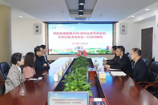 11月8日上午,加拿大不列颠哥伦比亚省列治文市市议员、代市长区泽光一行4人访问我校,副校长蒋昌波在云塘校区会见了来宾。国际交流处、科技成果转移转化中心负责人陪同会见。