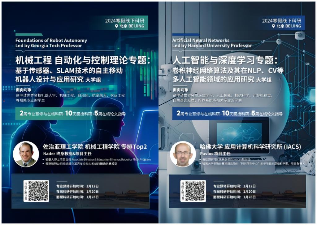 学生可根据专业、升学规划自行选择课题方向,具体课程方向及大纲等信息见附件一:附件1:2024年寒假线下海外名校导师-研究导向型科研项目列表,亦可扫描如下二维码查看“课题材料链接”。