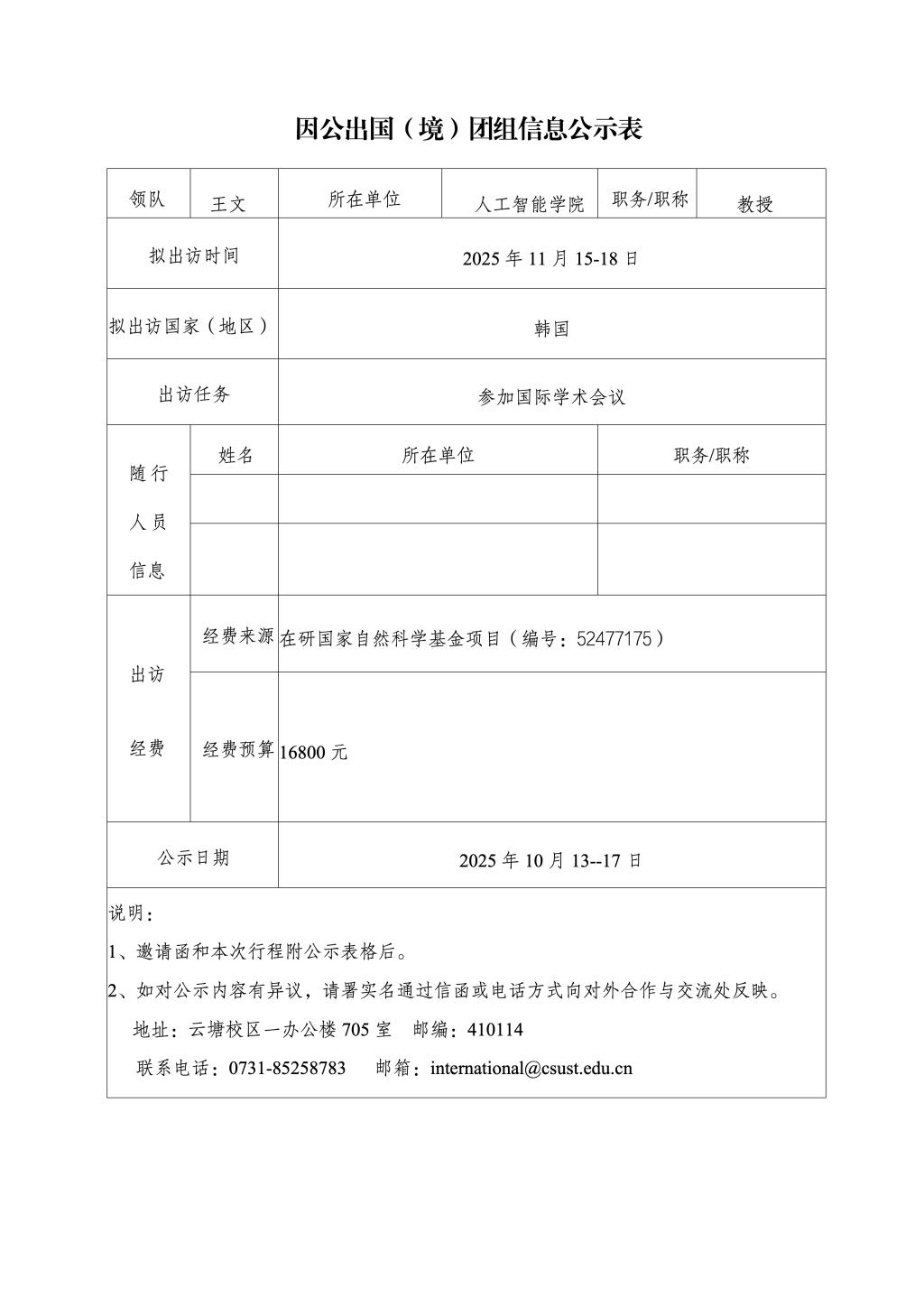 因公出国(境)团组信息公示表(吴迪龙等2人)