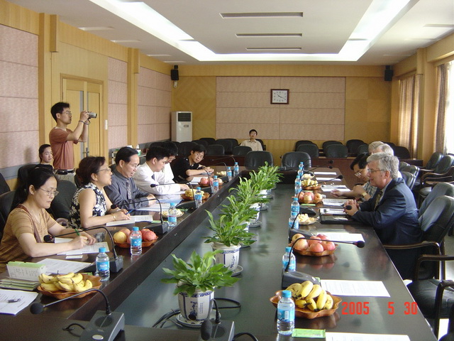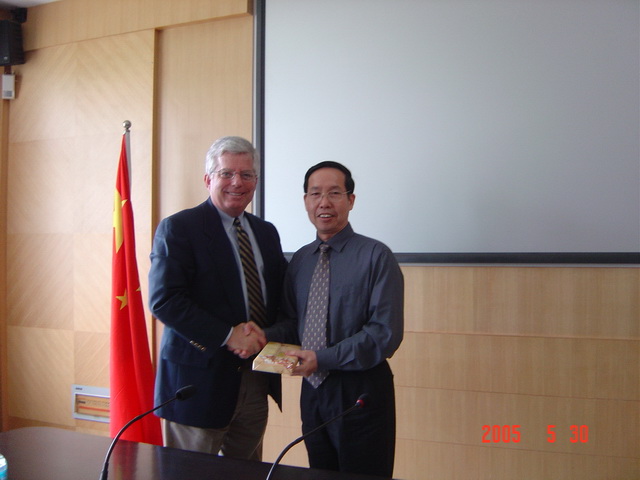 2005年5月前党委书记张扬教授会见来访的美国哈町大学校长布克斯先生