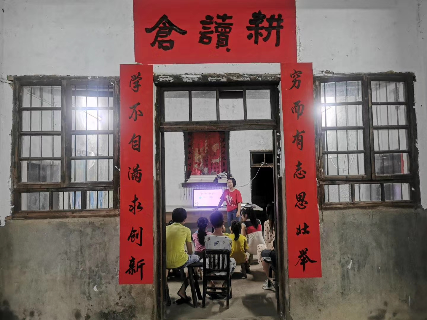 夜幕降临,教工党支部书记黄文卫代表学院参加村里一周一次的“耕读仓”文化教育活动。她以“石三伢子读书”为题向村里的孩子们分享了伟大领袖毛主席少年时期读书的故事,鼓励孩子们好读书、读好书,受到了孩子们的热烈欢迎。