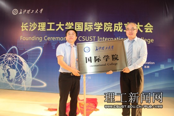 首先,副校长张建仁宣读了长沙理工大党[2015]17号《关于组建国际学院、成立国际学院党委及蒋昌波等职务任免的通知》。校长赖明勇为国际学院揭牌并授牌。