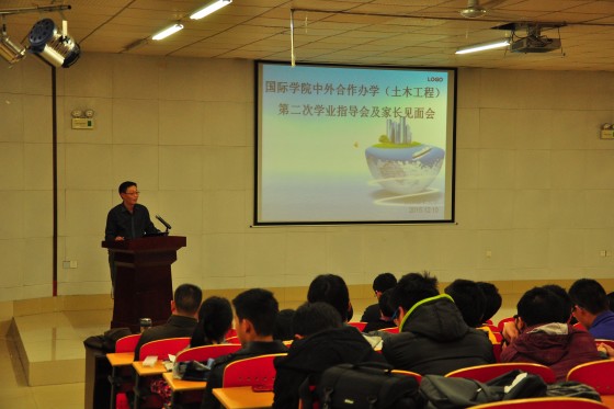 12月10日晚,国际学院在文科楼圆厅召开了中外合作办学项目(土木工程专业)第二次学业指导会暨家长见面会。国际学院副书记兼副院长段胜峰,副院长陈瑜,1503班班主任张锐及学院全体行政、教务、学工老师、2015级全体学生及部分家长代表出席了会议。