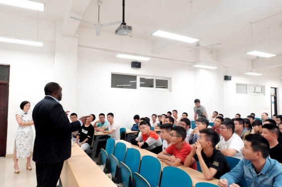 10月8日下午,在全校创建“双一流”及隆重庆祝学校办学六十周年之际,国际学院中外合作办学项目合作高校美国田纳西大学查塔努加分校代表Joseph Owino博士与2016级新生在文科楼A205举行交流会。国际学院常务副院长陈瑜、院长助理秦卫星、教务办、学工办教师及2016级新生参加了交流会。