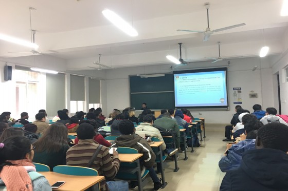 陈军教导员用流利的英文向同学们宣讲了《中华人民共和国出境入境管理法》,并以最近几年长沙市发生的涉外案件为实例,生动地展示了该法在长沙市的执行情况,使留学生们认识到外国人在华日常生活学习同样是在法律的监督下进行的。根据《中华人民共和国出入境管理法》和《中华人民共和国外国人出境入境管理条例》等相关法律法规中关于留学生来华密切相关的条款,陈军教导员进一步就签证、延签、居留许可及来华人员注意事项和安全问题做了详尽说明,要求留学生严格遵守我国的法律法规与学校的各项规章制度,顺利完成学业。