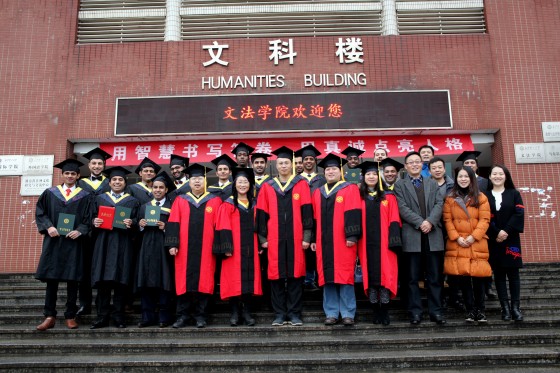 2017年1月5日下午,我校2017届春季来华留学生毕业典礼暨学位授予仪式在云塘校区文科楼B204隆重举行。副校长蒋昌波教授、土木与建筑学院副院长肖勇刚教授、汽车与机械工程学院副院长刘志强教授、电气与信息工程学院副院长杨洪明教授、国际学院党委书记陈若玲、13名2017届春季来华留学生毕业生、国际学院部分师生代表及数名远道而来的毕业生家长、亲朋好友参加了典礼。典礼由国际学院党委副书记段胜峰主持。