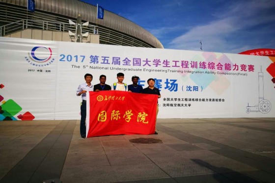 6月10日-11日,由教育部主办的第五届全国大学生工程训练综合能力竞赛(沈阳赛)在沈阳航空航天大学举行。来自全国79所高校的103支大学生代表队以及10支留学生代表队,共同参加两年一度的竞技盛会。我校国际学院学子在比赛中荣获三等奖。
