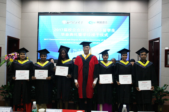 6月29日上午,我校2017届校企合作培养安哥拉、斯里兰卡来华留学生毕业典礼暨学位授予仪式在云塘校区工科二号楼B-301隆重举行。安哥拉洛比托港务局局长DIUR ANGELO KASSUL,湖南省人民政府外事侨务办公室郭向丽处长,留学生的资助方代表,中国港湾工程有限责任公司党委常委、总会计师熊升全,副总经济师、党委组织部部长、人力资源部总经理关巍;党群工作部(企业文化部)副部长贺柏森;党委组织部副部长、人力资源部副总经理孙海军;斯里兰卡区域公司党委副书记、人力资源部经理安昕;南部非洲区域公司市场部副经理杨岑,我校副校长蒋昌波教授出席典礼。我校有关职能部门、学院领导、在校留学生和部分师生代表、留学生亲友近200人参加典礼。