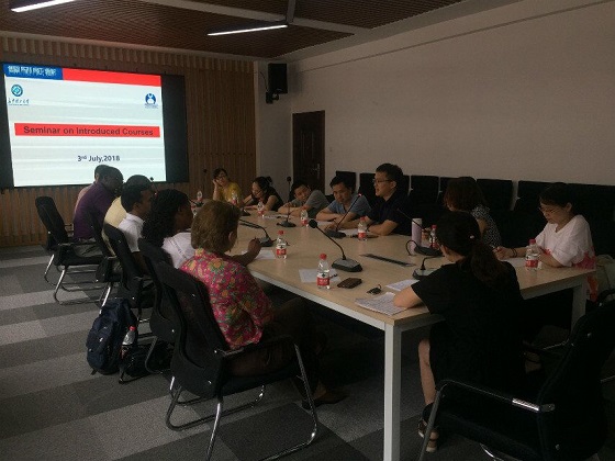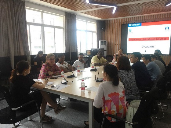 7月3日我校首个中外合作办学项目(土木工程专业)引进课程教学专题研讨会在国际学院会议室成功召开。项目合作学校美国田纳西大学查塔努加分校工程与计算机科学学院副院长Neslihan Alp教授,土木系主任Owino Joseph教授等5名外籍教师,和我校交通运输工程学院、土木工程学院、水利工程学院的张锐、曾明华、余志等7名引进课程助教老师及国际学院中外合作项目办公室全体教务人员参加会议。会议由副院长秦卫星主持。