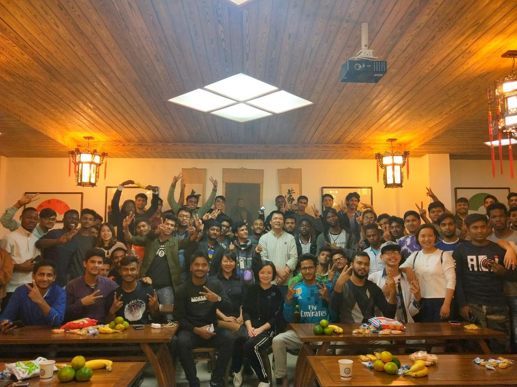 一进留学生公寓,就看到四名孟加拉国的学生在汉语角弹吉他,他们非常有礼貌,热情地邀请老师们参观他们的房间。随后,院领导走访了2018级秋季入学的新生宿舍,并向他们送去了代表着学院温暖与情谊的水果。在走访的过程中,亲切地询问了新生们来校后学习及生活情况,关切地询问了同学们的家乡在哪里,是否能适应长沙的气候和饮食,并一一解答了学生们提出的问题。