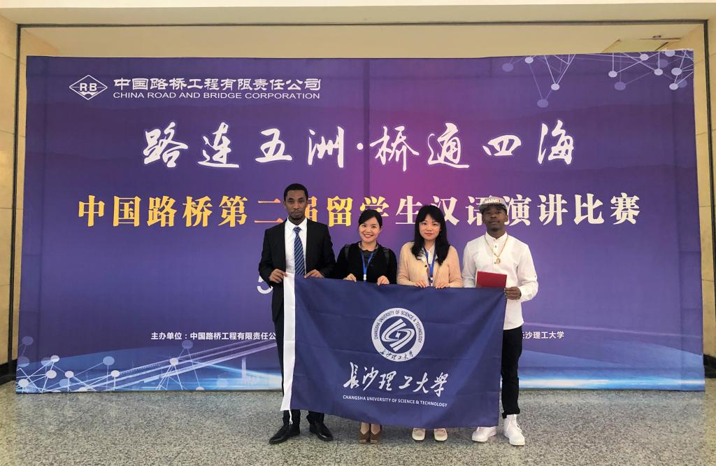 5月28日,“路连五洲·桥通四海”中国路桥第二届留学生汉语演讲比赛决赛在位于古城西安的长安大学隆重举行。我校与中国路桥工程责任有限公司合作培养的赤道几内亚籍留学生王安、肯尼亚籍留学生韩一晨,与其他15位分别来自长安大学、北京交通大学和东南大学的六国留学生同场竞技,精彩讲述他们和中国的故事。国际学院副院长甘海鹰、国际学院国际学生工作办公室王荟惠、孙夕珺,以及汉语国际教育教研室冀文秀出席了活动。