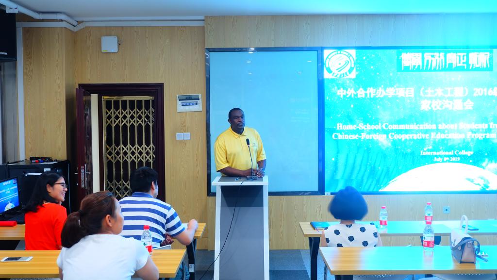 会上,Joseph Owino教授代表美方合作院校致辞,他表示为国际学院2015级首批赴美学习学生取得的成绩感到骄傲,认为该批学生刻苦学习也带动了美国本土学生的积极性,为当地带来了良好的社会影响。同时,他向大家详细介绍了同学们在美国学习的课程、住宿安排等情况。随后家长和同学们对赴美学习的有关问题和疑惑进行了咨询,美方院校及国际学院老师对家长和学生提出的问题一一进行了耐心解答。与会的家长们肯定了学院为学生赴美学习所做的组织协调工作。