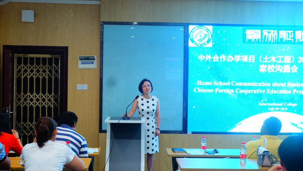 7月8日晚7点,中外合作办学项目(土木工程专业)2016级学生赴美国田纳西大学查塔努加分校学习行前家校沟通会在新能源大楼1栋404顺利召开,国际学院院长陈瑜、副院长秦卫星、美方合作院校土木与化学工程系主任Joseph Owino教授、美方教师代表Ignatius Fomunung教授和吴卫东博士、中外合作办学项目办公室老师和即将赴美学习的2016级13位学生及其家长参加。会议由副书记兼副院长吴振华主持。