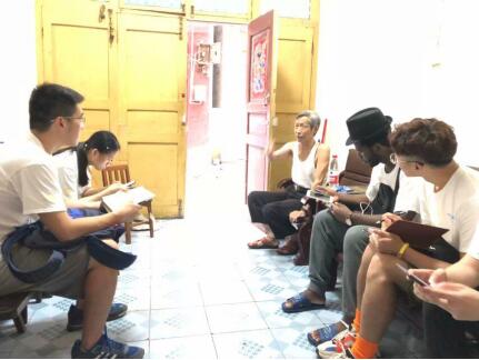 “迁陵一直是迁陵,至今已有2300年的历史……”土家族学者陈家驹老师如今已有78岁高龄,但是他对于这个研究了大半辈子的文化仍然是记忆犹新。陈老师着重为调研团介绍了土家族的民风民俗、服饰建筑等等,让调研团成员对土家族文化有了进一步的认识。一旁来自圣多美和普林西比的留学生Laelson虽然不能完全听懂有着土家族口音的陈老师所言,但是却被他讲述土家族历史、文化的慷慨之情吸引,“偷偷”拿出手机进行录音记录。