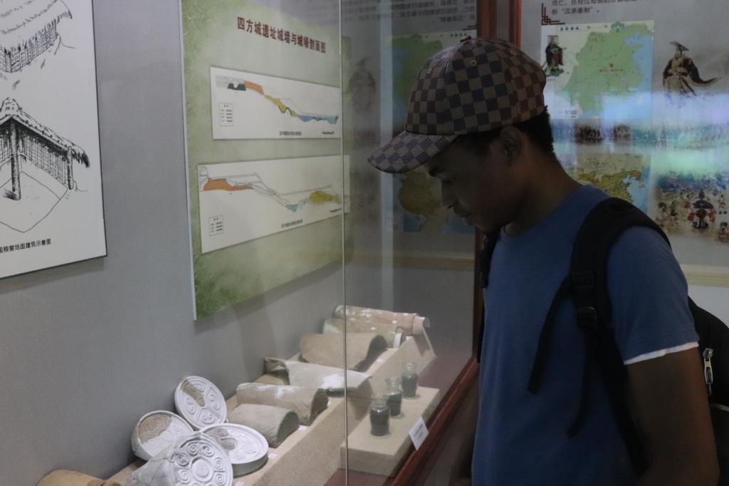 下午,调研团来到县非物质文化遗产中心进行调研。非遗中心的工作人员热情地向大家介绍了陈列文物的历史和保靖县现存的远古石器时代、战国、汉代等不同时期的遗址情况。其中镇馆之宝——“汉龟钮铜印”和“战国蜻蜓眼琉璃珠”深深地吸引了队员们的目光,2位国际学生对这两件文物也特别感兴趣,不由得感叹到土家族历史的悠久,由衷地佩服古代土家人的聪慧。调研队还参观展示的土家族优秀传统文化遗产——土家织锦“西兰卡普”。通过走访非遗中心,零距离接触土家历史,队员们深深地感受到土家历史的厚重与魅力,也了解到非遗文化传承的不易与艰辛。
