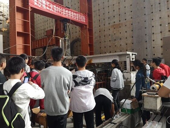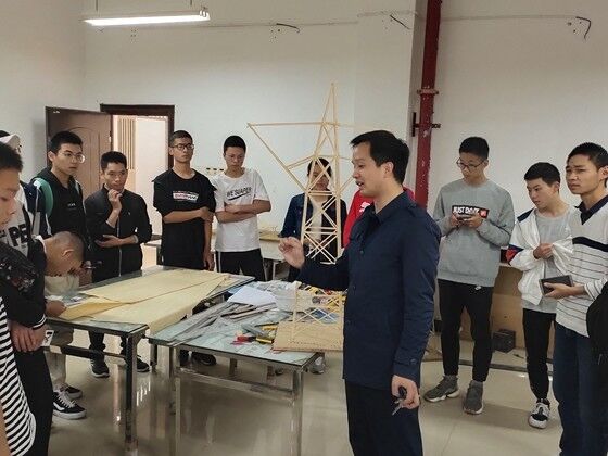 在公路工程实验中心,博士们为学生介绍了实验室的概况,结合斜拉桥模型疲劳实验等,通过还原实物,进行测量相关数据的流程演示,实验室先进的设备和研究生们认真的工作态度让学生们感受到了研究的乐趣。最后,学生们参观了结构力学国赛训练室,看到各类竞赛得奖证书和精美的参赛作品,同学们十分羡慕,指导老师付果为同学们答疑解惑。