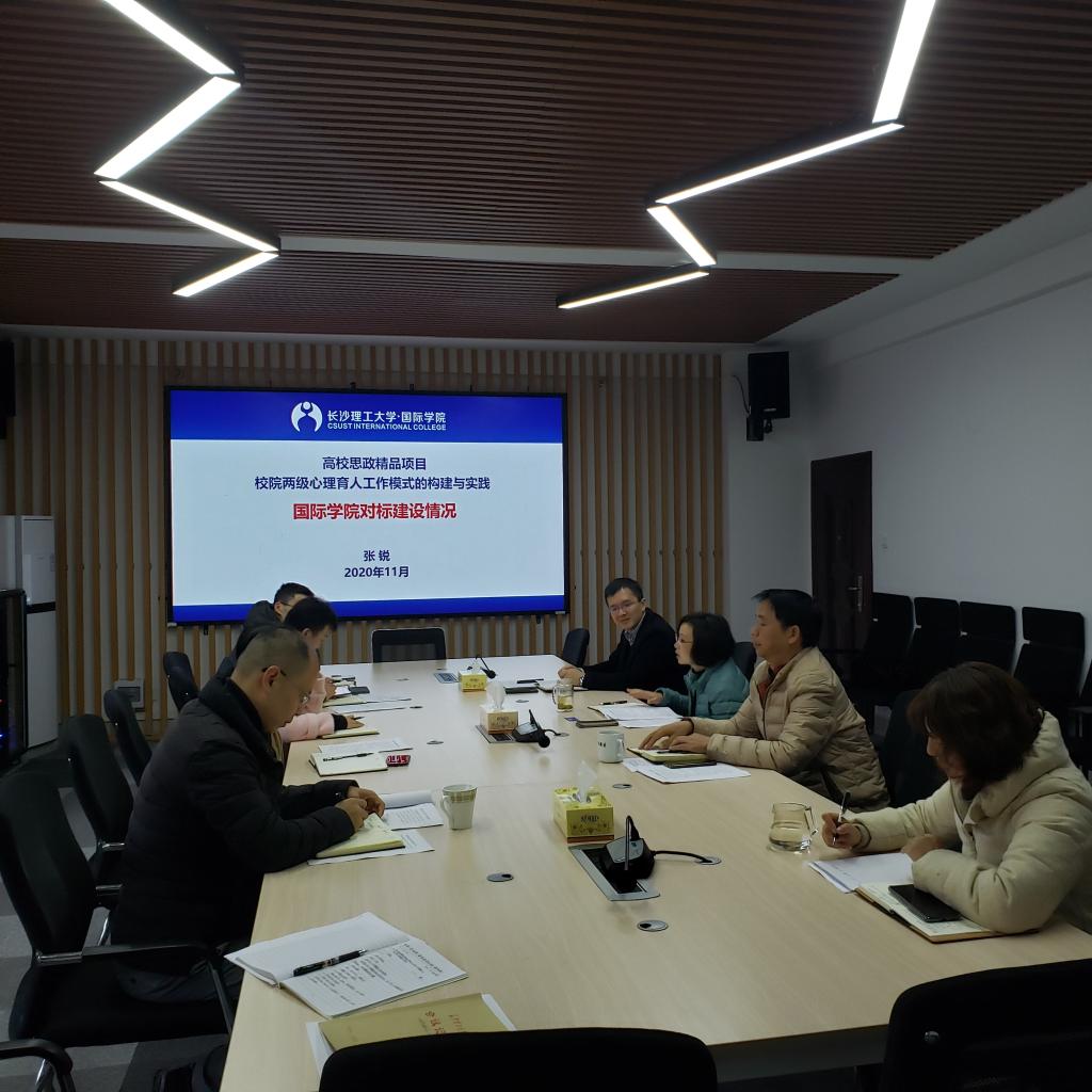 会上,张锐对标我校二级学院大学生心理健康教育工作基本建设体系,向领导小组汇报了我院大学生心理健康教育工作基本情况,分别就机制建设,师资和朋辈心理互助两支队伍建设,知识宣传、课外教育、成长辅导、危机干预四项工作体系建设进行了详细的介绍。领导小组成员围绕上述八个方面的建设情况,结合各自的认识,进行了充分的讨论,总结经验,分析形势,提出举措。领导小组一致认可以打造特色团学品牌活动为抓手,将心理健康教育与学风建设、创新创业教育、素质拓展四项并举,进一步推动心理健康教育工作出成效。领导小组还审议了《国际学院大学生心理健康教育工作实施细则》《国际学院学生心理危机干预实施细则》。