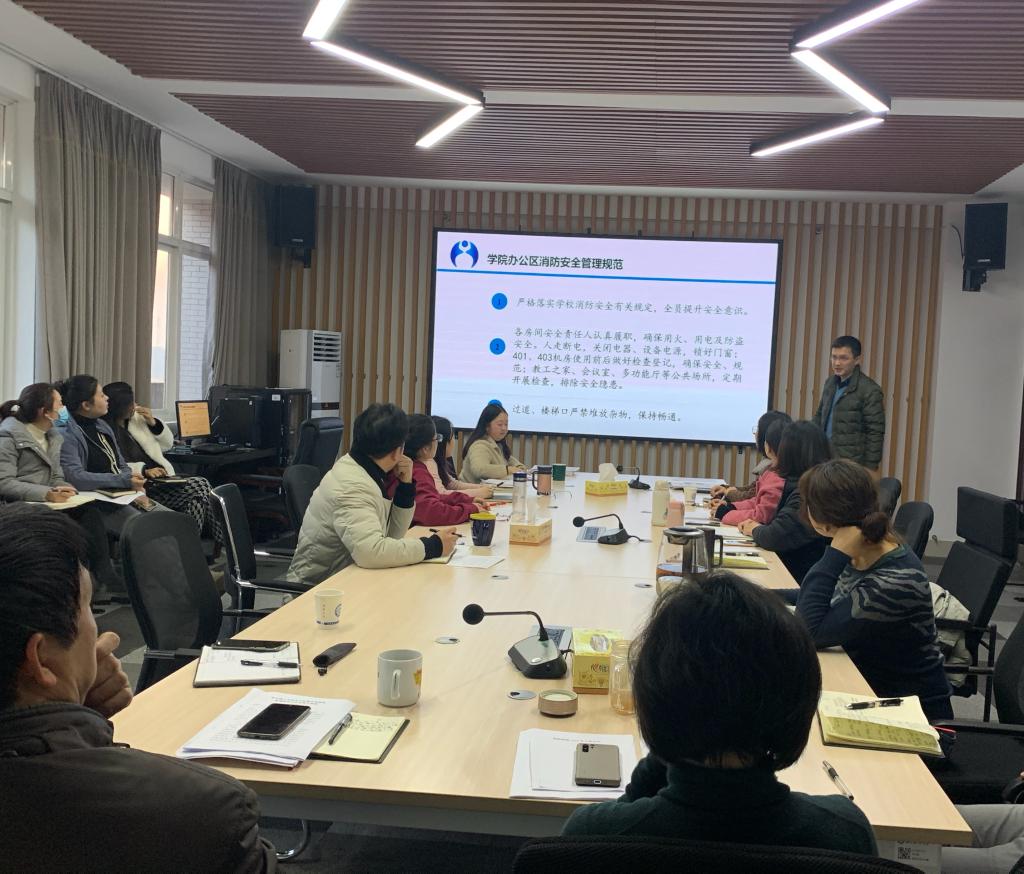 最后,院党总支副书记兼副院长张锐,向大家进行了消防安全知识宣讲,重点阐述了行政办公区域消防安全管理规范、消防安全小常识及火灾自救逃生技巧,告诫大家筑牢安全意识,杜绝事故隐患。