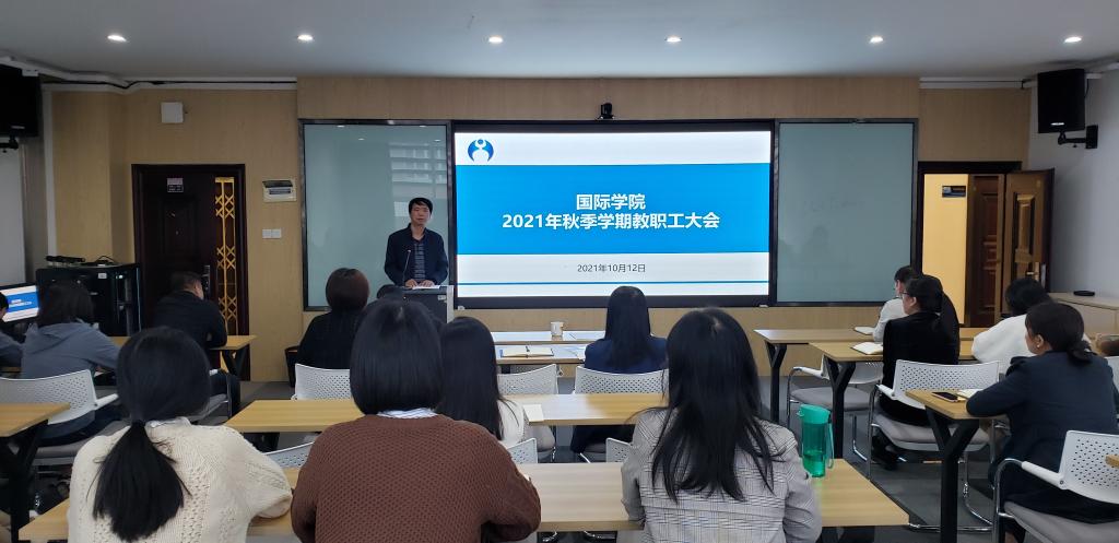 10月12日下午,国际学院在学院阶梯教室召开2021年秋季学期全体教职工大会,总结暑期和开学以来工作开展情况,安排部署下一阶段工作。院党总支副书记兼副院长乔法光主持会议。