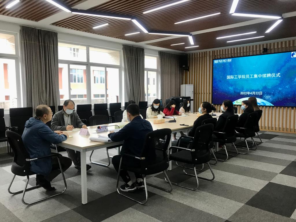 4月22日上午,国际工学院员工集中续聘仪式在云塘校区新能源大楼1栋416会议室举行。学院院长吴迪龙、副院长秦卫星及全体续聘老师参加仪式,仪式由秦卫星主持。