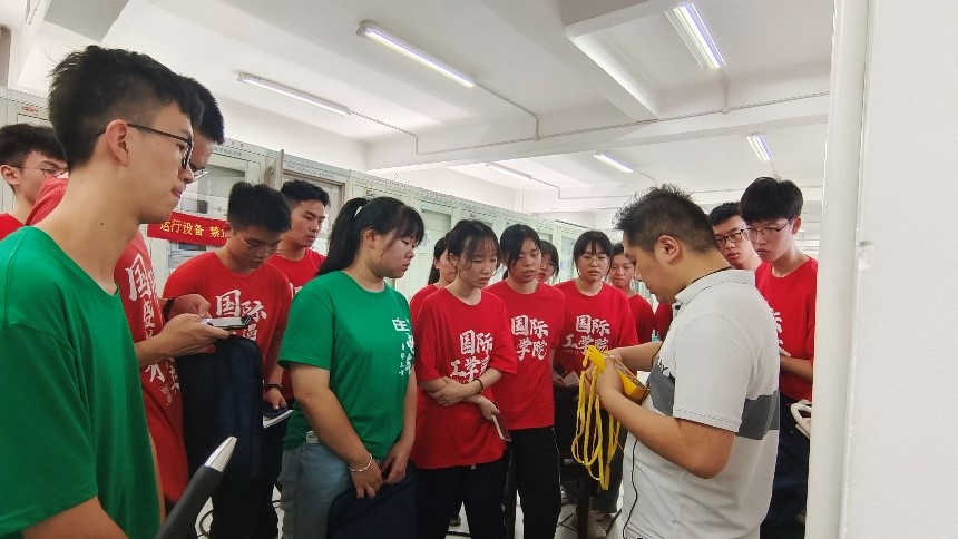 国际工学院实践团在星沙实训基地实践期间还学习了变电站的继电保护设备。跟随星沙实训基地指导教师,实践团队员们前往了位于基地内部的保护小室,与各式各样的保护屏柜进行了近距离接触,对保护设施的功能及发展概况进行了初步的学习。正是一次又一次严谨的继电保护工作,保证了庞大电力系统的稳定、安全运行,实践团成员在学习实践期间感受到了电力人严谨务实的态度和责任意识,并将在未来的学习工作中学思践悟,不断提升思想认识水平。