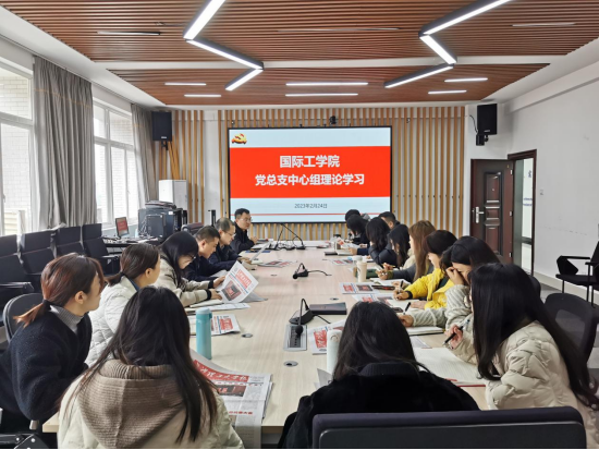 2023年2月24日,国际工学院党总支中心组开展2022年度民主生活会专题理论学习,学院党总支书记王学成主持学习,学院党总支中心组成员及全院教工党员参加了学习。