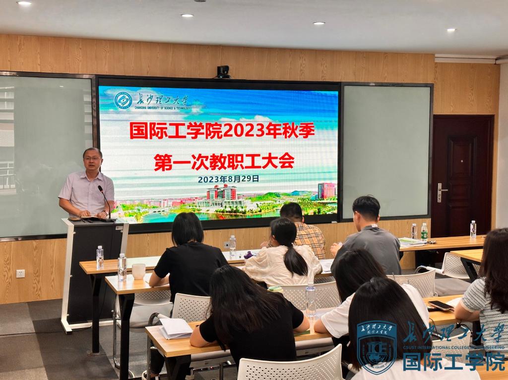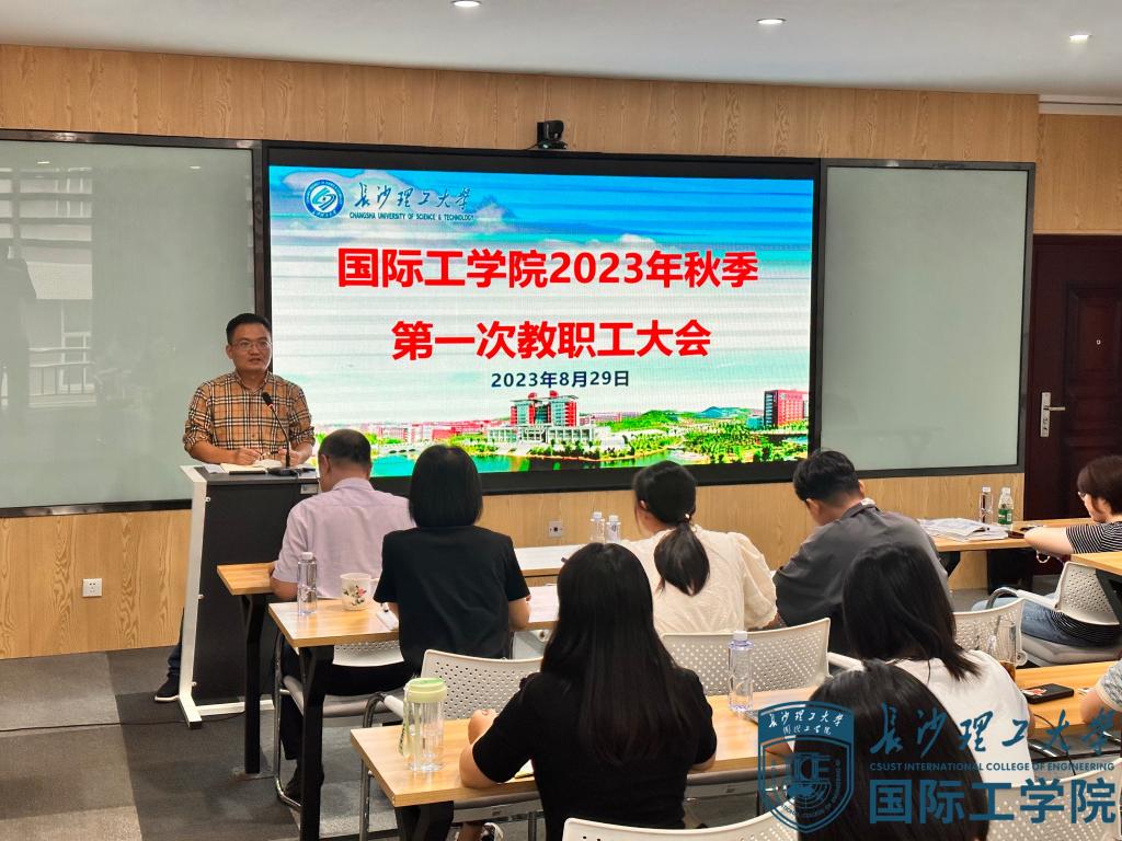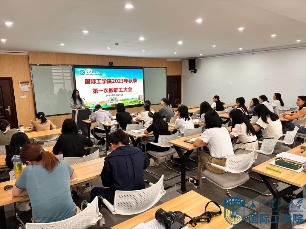 8月29日下午,国际工学院新学期第一次全体教职工大会在新能源大楼一号楼404会议室召开,学院全体教职工参加。会议由副院长黄月华主持。