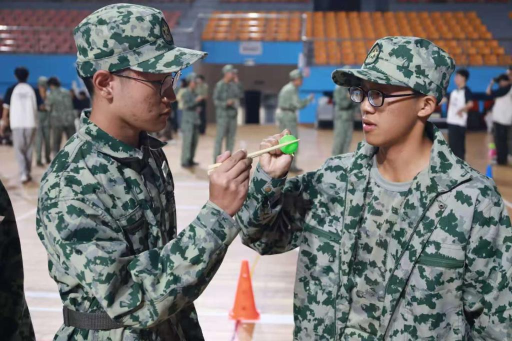 本次活动分为文艺暖场、军歌比赛、趣味运动会三个部分。在校音乐社的动人歌声中,活动拉开帷幕。《一万次悲伤》《爱爱爱》等歌曲传递出学长学姐对新生的鼓励与期盼;改编版《月亮代表我的心》以轻松旋律点燃全场热情。辅导员魏涛、熊英与2023级学生马浩裕也相继登台献唱,台下同学们纷纷点亮手电筒,星光摇曳,呼应歌声,营造出温馨融洽的节日氛围。在军歌比赛环节中,各排新生精神饱满、气势昂扬,最终二排凭借《强军战歌》的出色表现荣获一等奖。