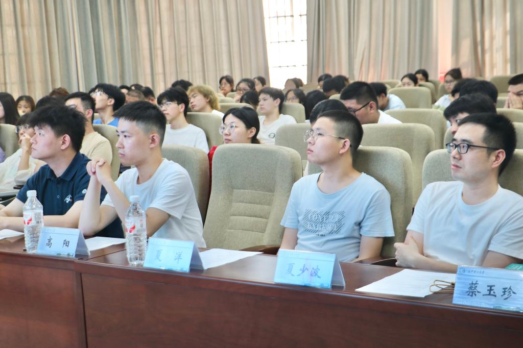 接下来,三位优秀毕业生分享了不同发展路径上的宝贵经验和切身体会。郑冠峰同学作为学院本硕博贯通培养的优秀学子,从考研规划和科研经历两方面分享了自己的成长经历;高阳同学以考公为就业目标,分析了考研时的院校选择和专业选择,并给出切实建议;夏洋同学则详细分享了涵盖考研报名、初试复习、复试准备和联系导师的全流程备考经验以及注意事项。