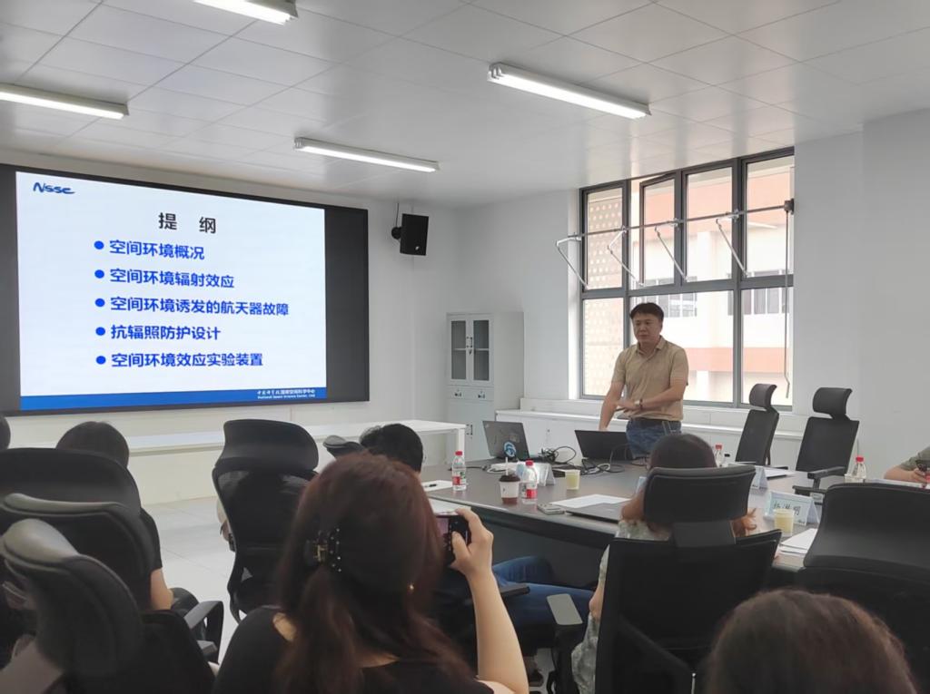 张贤国主任以《空间粒子辐射环境探测与应用》为题作专题讲座,介绍了空间环境探测重点实验室的历史脉络,梳理了我国粒子探测技术的发展历程,并详细阐述了航天器目前面临的空间辐射环境效应问题。