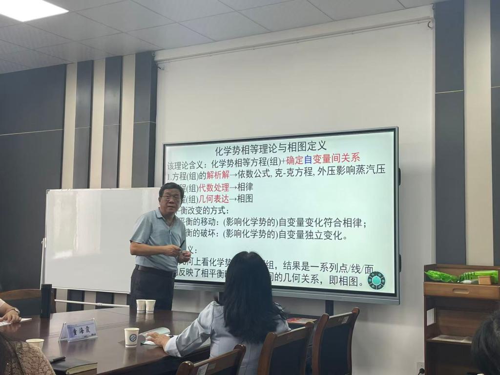 本次报告围绕化学势相等这一热力学核心概念,系统梳理了其理论内涵、应用维度及知识延展。吴教授从三个层面展开论述:在代数层面推导吉布斯相律,于几何层面构建相图,从场景层面解释依数性、推导相平衡方程,并将内容拓展至化学平衡、电化学等领域。