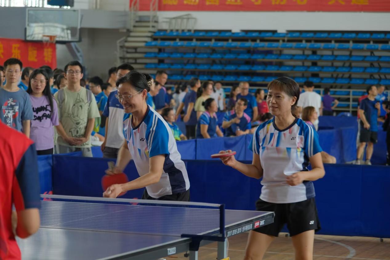 本次比赛设置了男子单打、女子单打、男女混合双打、男子双打、女子双打五个比赛项目。赛前,化院老师们集训两周积极备战,相互磨合,团队协作渐入佳境。比赛过程精彩纷呈、高潮迭起,整场比赛充分展示了化院老师积极进取、敢打敢拼的精神风貌。参赛老师发球抢攻、上步搓球,他们身姿矫健、步履轻快灵活进行着推挡、扣杀,再加上变幻莫测的旋转球、弧线球等巧妙运用,小小的球在空中画出一道道精美的弧线,精彩场面层出不穷,无不显示着老师们的实力和敏捷的思维。激烈的比赛、胶着的比分,牵动着现场观众的心弦也收获了观众们的热情欢呼。经过激烈角逐,小组赛中化院老师队伍接连迎战5个学院,并以4胜1负的战绩出线,最终在全校23支参赛队伍中取得第8名的成绩。