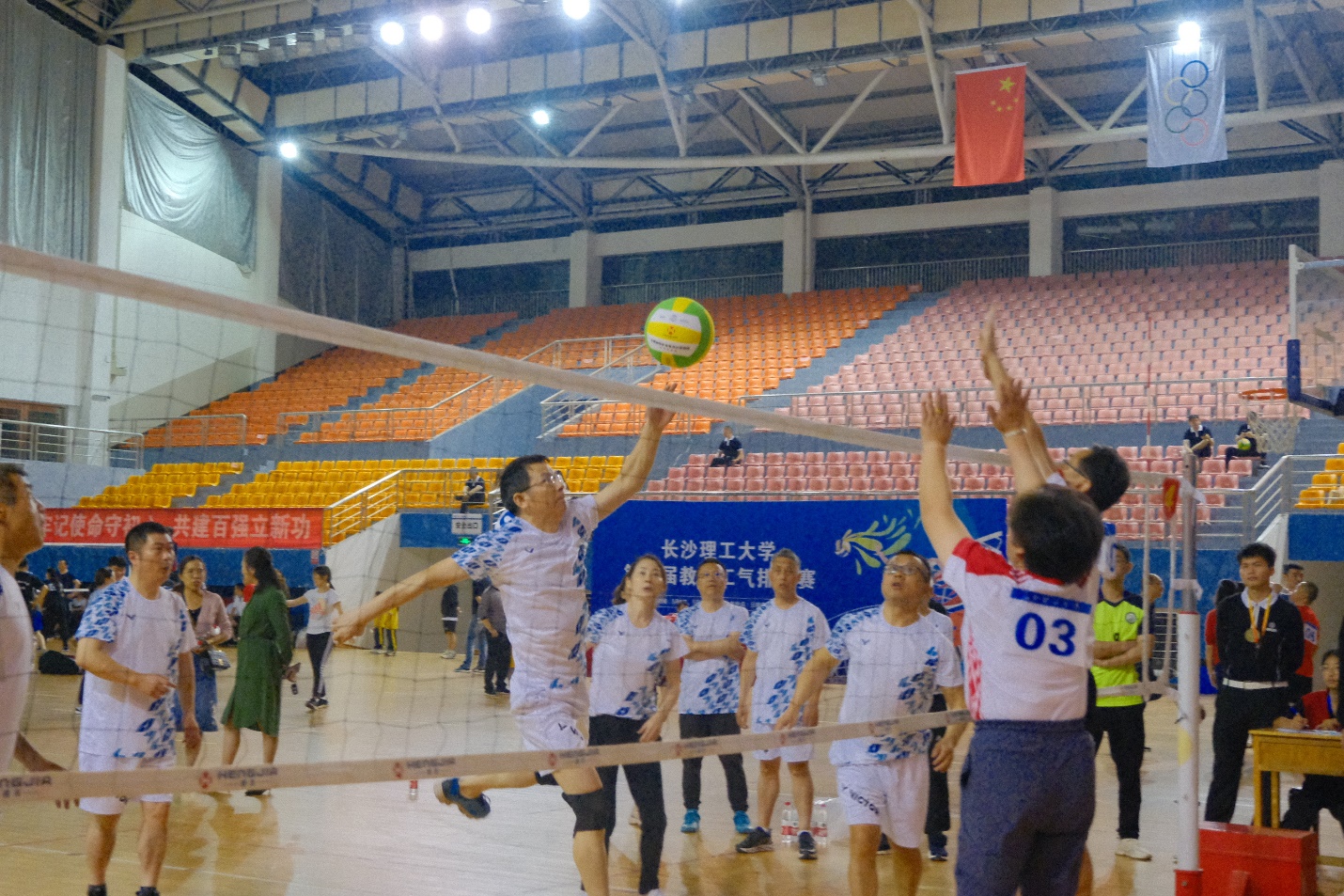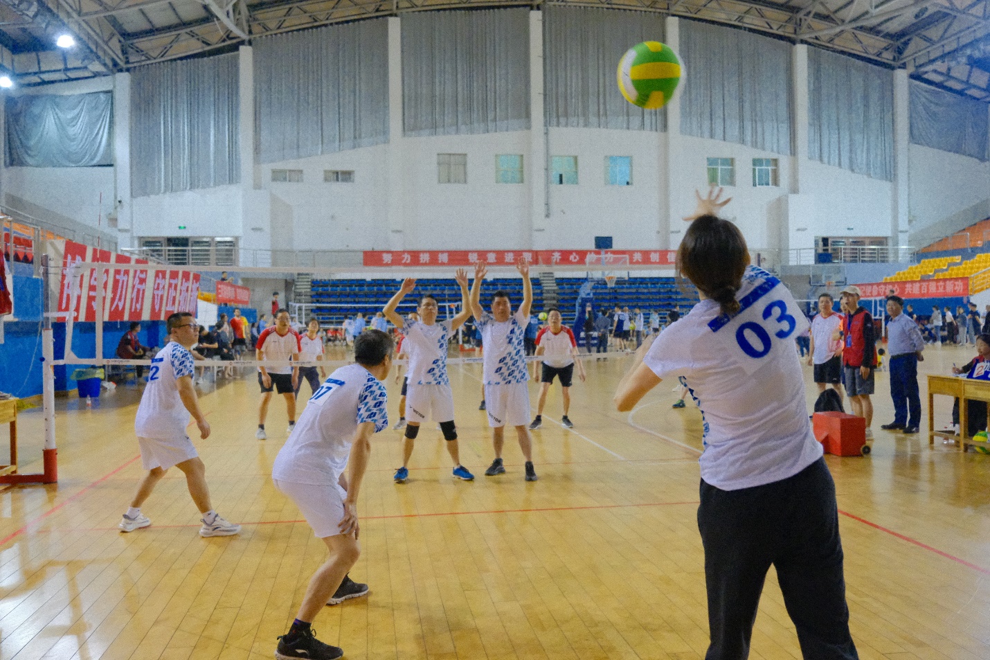 本次比赛共有28支队伍参加,共分为4个小组进行比赛,每个小组7支队伍进行循环赛,各取前2名进入8强。赛前,化学院老师们进行了三周的积极备战,以提升团队凝聚力以及老师们的默契程度。5月9号晚,化学院首场比赛以2:0战胜马克思学院,取得了开门红。紧接着迎来了与小组种子队伍机关代表队的比赛,过程精彩纷呈、扣人心弦。参赛老师们配合默契,一传、二传、扣杀、拦网,节奏行云流水,比赛异常激烈,比分也十分胶着。虽然化学院的老师们全力以赴,但作为种子队伍的机关代表队也是实力非凡,最终化学院以小比分占优,但大比分1:2不敌,惜败给了机关。5月13日,化学院的老师们又迎来了另外4场小组赛,分别对阵数统、能动、建筑、投资四支队伍。其中与能动学院的比赛尤为精彩。双方你来我往,比分紧咬,最终化学院以1分之差,惜败给了能动学院。另外三场分别对阵数统、建筑、投资的比赛,化学院战队都以2:0胜出。
