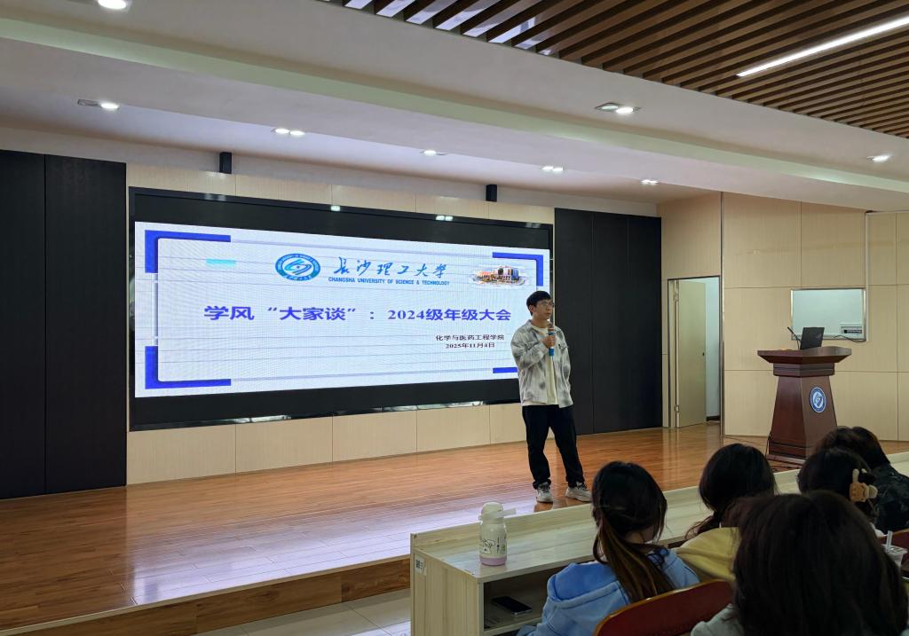 11月4日,化学与医药工程学院在工三楼A307组织召开2024级本科生“学风大家谈”主题年级大会,全体2024级学生参加会议,会议由年级辅导员江洁主持,助理辅导员杨奇海一同出席。