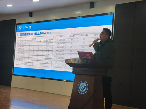 会议伊始,张航总结回顾了2022级本科生在过去一年中的学业和学科竞赛成绩。多名学生在各类学科竞赛中获得了国家级和省级奖项,展示了学院在培养学生综合素质方面的成效。同时会议也指出,学风建设中仍然存在一些不容忽视的问题。个别同学在学习态度上不够端正,缺乏足够的主动性和自律性,影响了整体学风的提升。会议强调,学风建设不仅仅是一个学业问题,更是培养学生责任感和集体精神的重要方面。随后张航分析了过去三年学院考研和就业的整体情况,指出在学院的引导下,越来越多的同学选择考研深造,并取得了不小的成功。同时,也有一些同学选择了进入职场,找到了理想的工作岗位。张航鼓励大家根据自己的兴趣和优势,尽早规划未来的职业路径,不仅要注重眼前的学习,更要在未来的职业发展中实现自我价值。