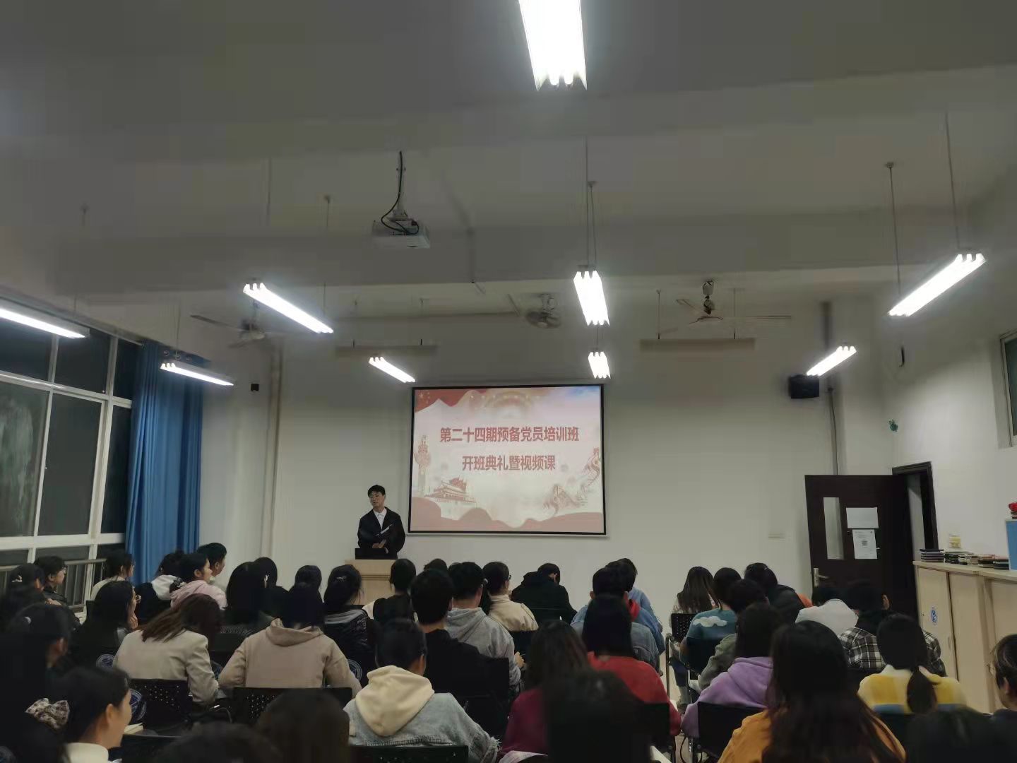10月20日晚上8:00,为学习贯彻习近平新时代中国特色社会主义思想,加强党性锻炼,进一步坚定入党初心,提升预备党员党性修养,提高党史学习教育成效,化学化工学院在工科三号楼B210开展了第二十四期预备党员开班典礼暨视频课,学院党建辅导员江洁老师出席典礼,党校培训组范禛禛主持。