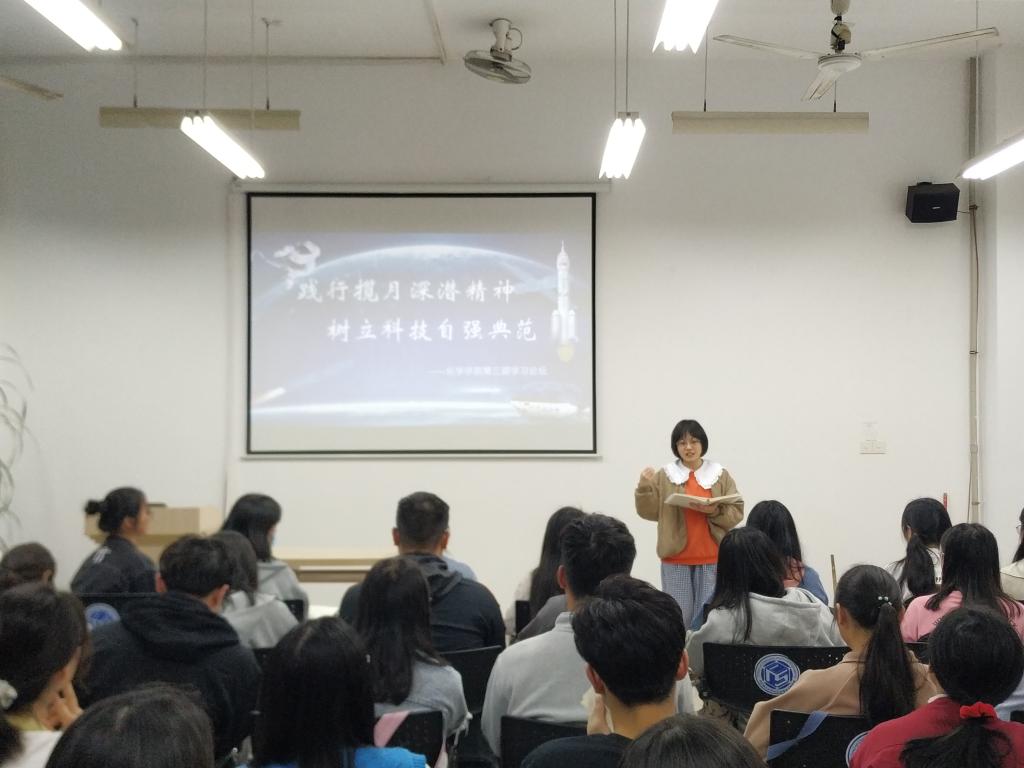 3月26日晚,化学学院学生党总支在工三B210举办第三期学习论坛,本期主题为“践行揽月深潜精神,树立科技自强典范”。论坛由应化支部唐思思主持,部分党员和积极分子代表参加。